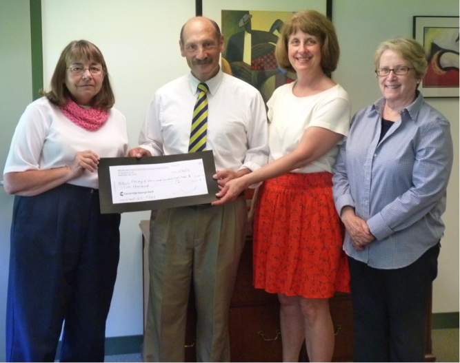 Linda White, outgoing BEF Co-Chair and Marge Heckman, Co-Chair presented a check for $5000 to Bedford school Superintendent Jon Sills and Assistant Superintendent Claire Jackson as the BEF’s contribution toward the new partnership just established between the Bedford Public Schools and Facing History and Ourselves (FHAO).
