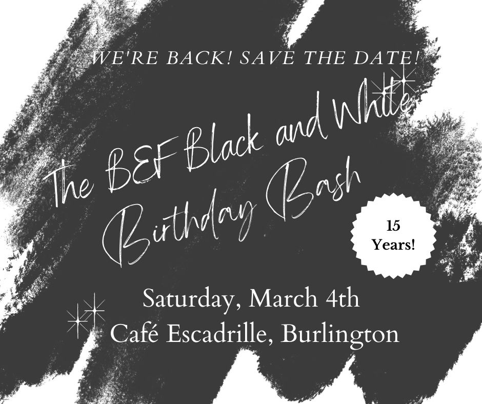 Happy New Year! We are very excited to announce that the Bash is back in 2023! The BEF is celebrating 15 years of funding creative and innovative initiatives in Bedford’s schools, and we’re throwing ourselves a Black and White themed Birthday Bash. Do not miss the biggest night of the year for our schools! More details to follow soon, but you know it will be an evening to remember with lots of fun in store. For now, mark your calendars for Saturday, March 4th!