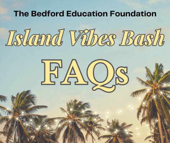 This is it, Bedford! The Bedford Education Foundation’s Island Vibes Bash is the biggest party of the year supporting ALL Bedford schools, and it’s coming right up on Saturday evening, March 1st! Please read on. This is your chance to help us raise funds to support innovation and creativity in the Bedford Public Schools, you DO NOT want to miss it!